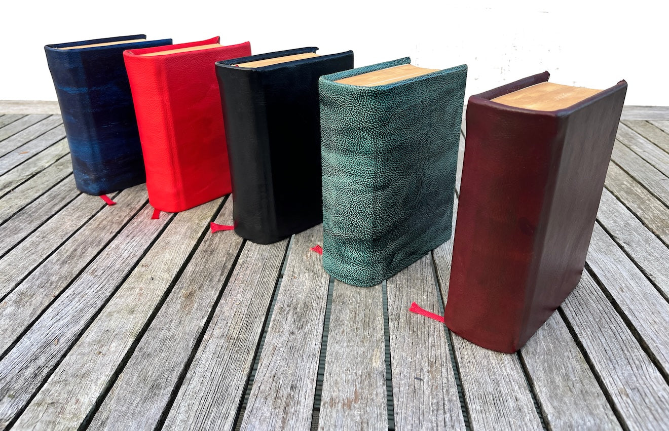 These are rustic full leather hardbound rebinds of our Tyndale 1534 linen hardback edition. They are created by hand in Ireland using premium cowhide leather.